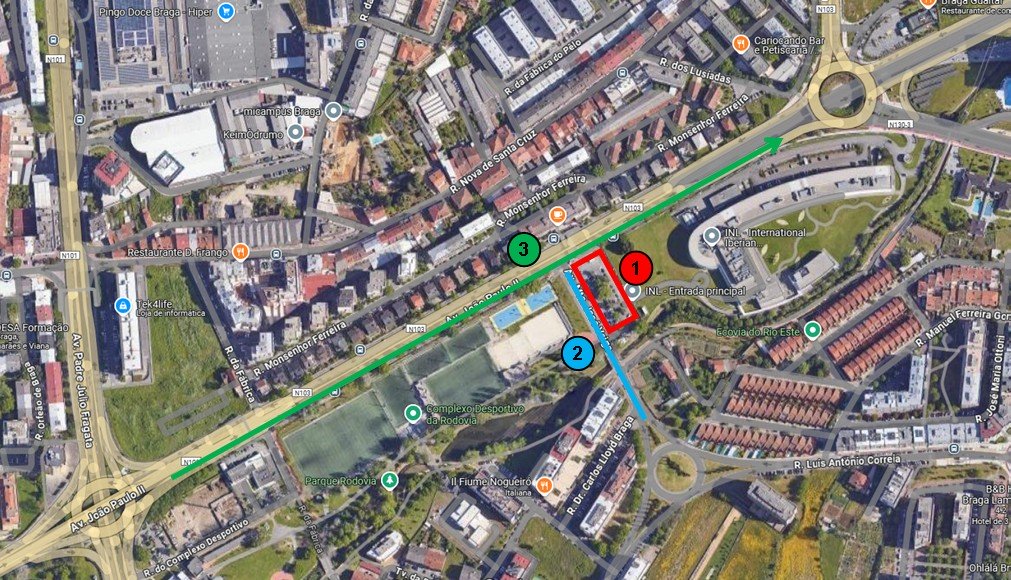 1 – Entre as 17H00 do dia 26 e as 17H00 do dia 29 de março é proibido o estacionamento automóvel no parque de estacionamento a nascente da Avenida Mestre José Veiga (confinante com o Laboratório Ibérico de Tecnologia, INL).