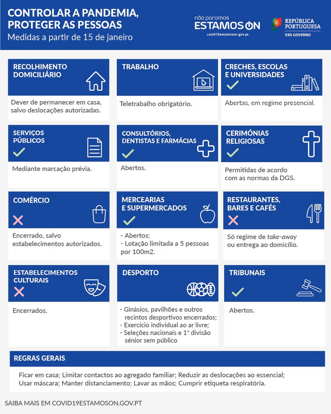 A partir de sexta feira dia 15 de Janeiro, Portugal entra em novo confinamento. Saiba aqui o que isso implica e quais a regras a ter em conta: